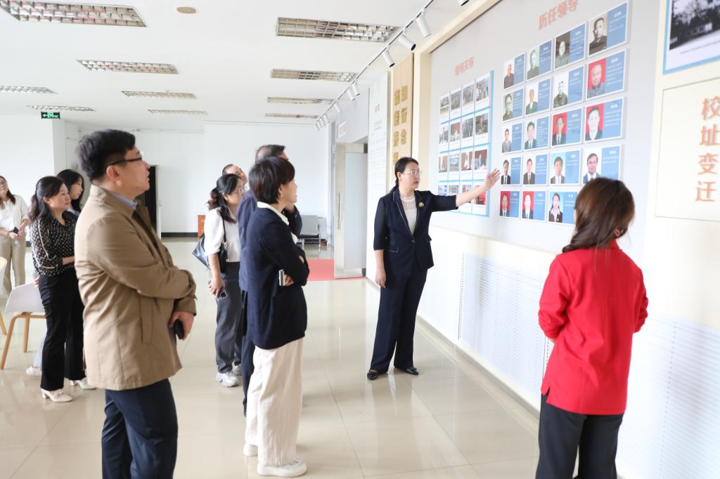 刘珉首先对中国职业技术教育学会外语教育工作委员会一行的到来表示热烈欢迎,并介绍了我院办学历史、专业布局、“双高”建设进展以及校企合作方面的成效。闫国华介绍了湖南外国语职业学院在专业建设方面的特色,分享了专业设置思路、产教融合实践等内容。中国职业技术教育学会外语教育工作委员会秘书长李淑静介绍了学会外语教育工作和外研社相关情况,以及“职教出海”背景下外语教学改革在教学资源建设与师资培养等方面助力高职外语教育高质量发展的举措。随后,双方就职业院校外语教育深化改革、创新发展,提升职业教育人才培养质量,服务新质生产力发展和高水平对外开放等问题进行了深入探讨。会后,双方参观了学院校史展和校友风采展。