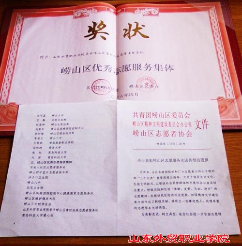 经济管理系青年志愿者服务队坚持 “从小事做起”、“自发献爱心”的宗旨。2004年10月23日,发起了“大学生献爱心-牵手崂山区聋哑学校”的手拉手互助活动;2005年,组织了两次无偿献血活动;今年,参与了与李沧区虎山路社区的联谊活动、青岛市的住房情况调查、先后组织各类献爱心及联谊活动8次,受到共青团崂山区委和社会各界的高度评价。今年四月,被共青团崂山区委、崂山区文明办授予“崂山区优秀志愿者服务集体”称号,并颁发了荣誉证书。