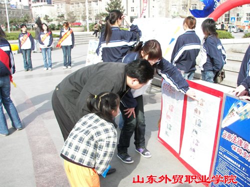 本次活动共分为四个板块,通过发放宣传材料、张贴宣传海报、事例讲解、表演展示等形式为群众提供信息服务。第一板块是会计专业与中国人民银行青岛市中心支行合作,为群众提供理财安全的信息,讲解了人民币反假知识、反洗钱、预防信用卡诈骗等知识;第二板块是旅游专业学生介绍春季经典旅游线路,以及旅游时需要注意的问题;第三板块是文秘专业的商务礼仪展示,向群众介绍一些基本的商务礼仪知识;第四板块是营销专业关于营销和案例的介绍,告知群众正确对待商家的营销策略。学生们用自己所学知识奉献社会,服务群众,展现了当代大学生的风采,受到了现场群众的好评。