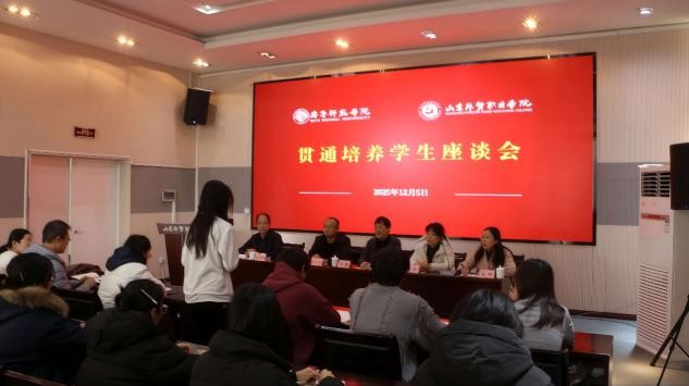 12月5日下午,齐鲁师范学院经济与管理学院院长周健教授、财务管理专业带头人郭思亮教授、贯通教研室主任李晖教授一行来我院指导大数据与会计专业专本贯通培养工作。财会金融系党政领导、大数据与会计专业教师及贯通班全体学生予以热情接待。双方围绕专本贯通人才培养模式、课程衔接、资源共建及学生发展等议题进行了深入交流和探讨。