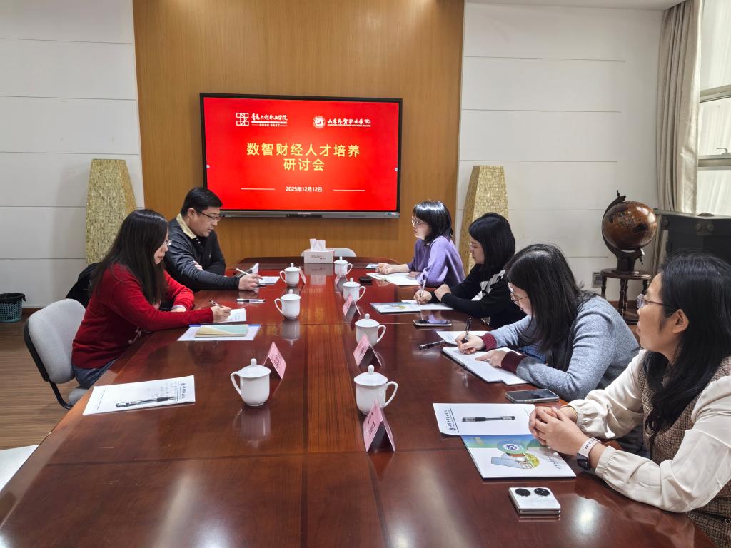 12月12日,青岛工程职业学院海洋财经学院院长李丽杰、大数据与财务管理专业负责人等一行4人来访我院,就数智财经人才培养开展座谈研讨。我院财会金融系副主任徐烨等参加会议。座谈会上,双方讨论了财会金融专业群建设、人才培养模式创新、数字化课程体系构建、产教融合实践及学生就业等相关问题。李院长表示,买球体育平台财会金融人才培养取得丰硕成果,双方在校企合作、技能大赛、课程体系建设等方面的合作交流为其专业建设提供了有益借鉴。我院将继续与青岛工程职业学院在师资培养、实训教学、RPA机器人等数智课程开发等方面加强合作,共促发展。双方认为,在产业数字化转型背景下,必须改革专业人才培养模式,校企合作开发业财融合数字化实践项目,建设数字教材、精品在线课程,持续开展师资数字素养提升培训,培养专业素养、数字素养、综合素质全面提升的复合型技术技能人才,为加快发展新质生产力、建设数字中国贡献职教力量。