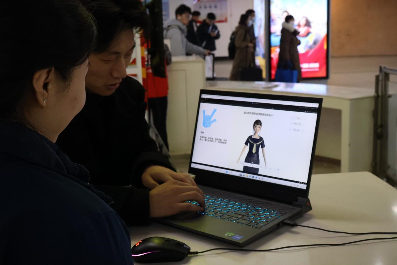 活动现场,青岛地铁李村站设立的“手语元宇宙体验区”成为核心亮点,信息工程系师生团队自主研发的“塑声者手语词典”正式面向公众发布。该词典依托3D虚拟人物演示技术,用户通过词条搜索功能,可快速调取对应词汇的标准手语动作演示,实现直观高效的学习与使用体验。目前,词典已覆盖交通指引、就医问诊等高频场景,收录700余条实用词汇,充分适配公共服务领域的无障碍沟通需求。“这个‘换乘’的手势比我们平时学得更规范!”现场体验的听障市民张女士用手语连连称赞,对词典的实用性与规范性给予高度认可。此次实践活动将专业技术研发、劳动实践与公益服务有机融合,实现了劳动教育成果的长效转化。