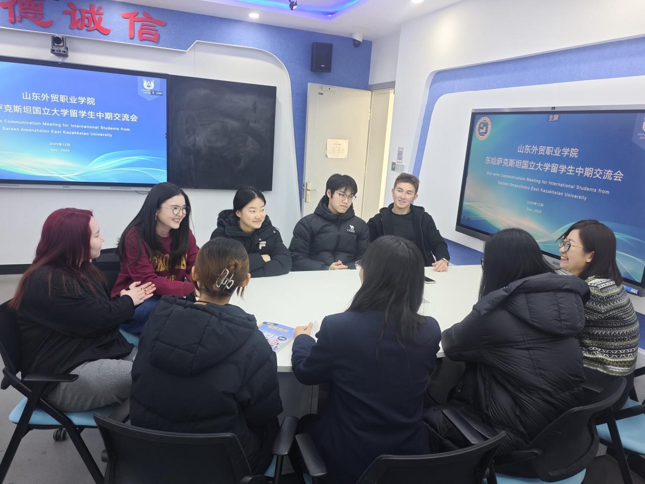 12月31日,学院举行“海外业务代表”项目东哈萨克斯坦国立大学留学生中期交流会。我院师生代表、合作企业代表与留学生面对面交流学习生活情况,共话成长收获。