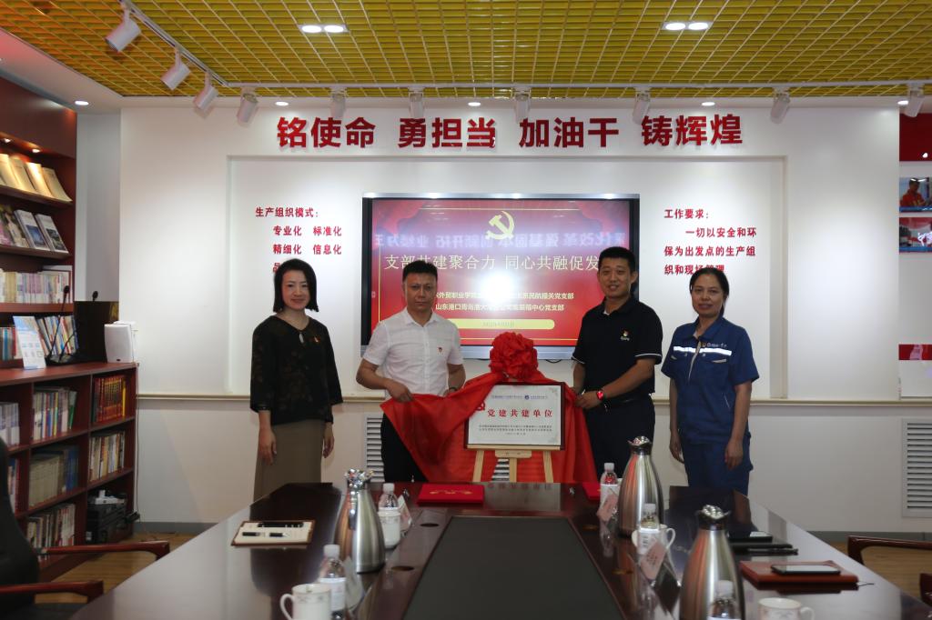 黄维一行参观考察了山东港口历史展馆、青岛港调度中心及大港海关查验中心,听取了全国劳动模范、党的十八大、十九大代表、山东港口青岛港大港分公司“皮进军劳模创新工作室”负责人皮进军同志的模范经验介绍。随后,国际运输与物流系民航报关党支部与山东港口青岛港大港分公司集装箱中心党支部举行了党建共建签约和揭牌仪式,并就下一步校企双方如何以党建为引领,围绕文化呈现、精神传承、技能提升、品牌打造等开展相关党建活动,共同提升党建和业务双提升进行了深入交流。